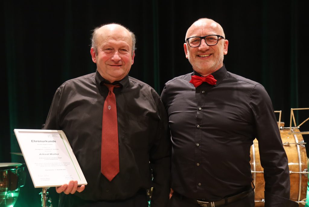Eine besondere Ehrung für 50 Jahre aktivem Singen im Verein erhielt Alfred Müller im Jahr 2025 beim traditionellen Adventskonzert.